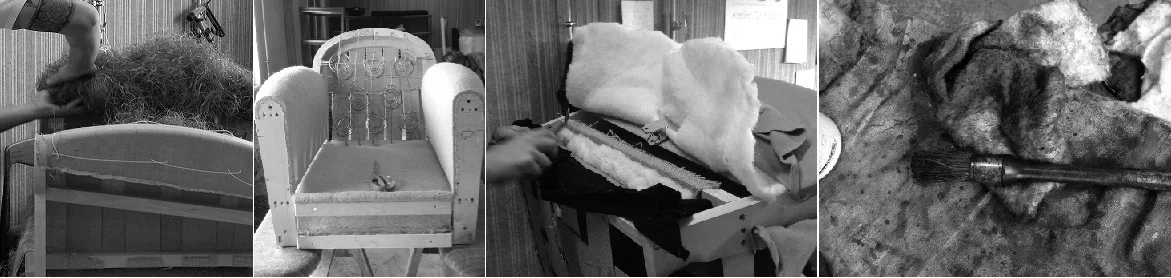 Vegetal horsehair padding only on the seat, back and the armrests. No foam.